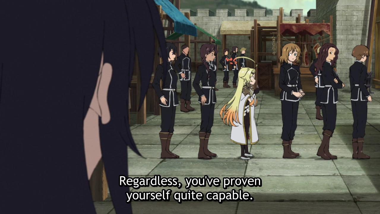 В плюсы ещё добавлю намёки на реализм: когда Хадзиме пытается пристроить сиротинушку в приют ему священница прямым текстом выдаёт, что девчушка не с их поселения, а значит никто её брать не станет - своих голодных ртов навалом, а то что он обещает помочь мясом, ну так дети - не волчата, им не только еда нужна, но и одежда, лекарства (когда заболеют), посуда, постельное бельё, книги и много ещё чего.