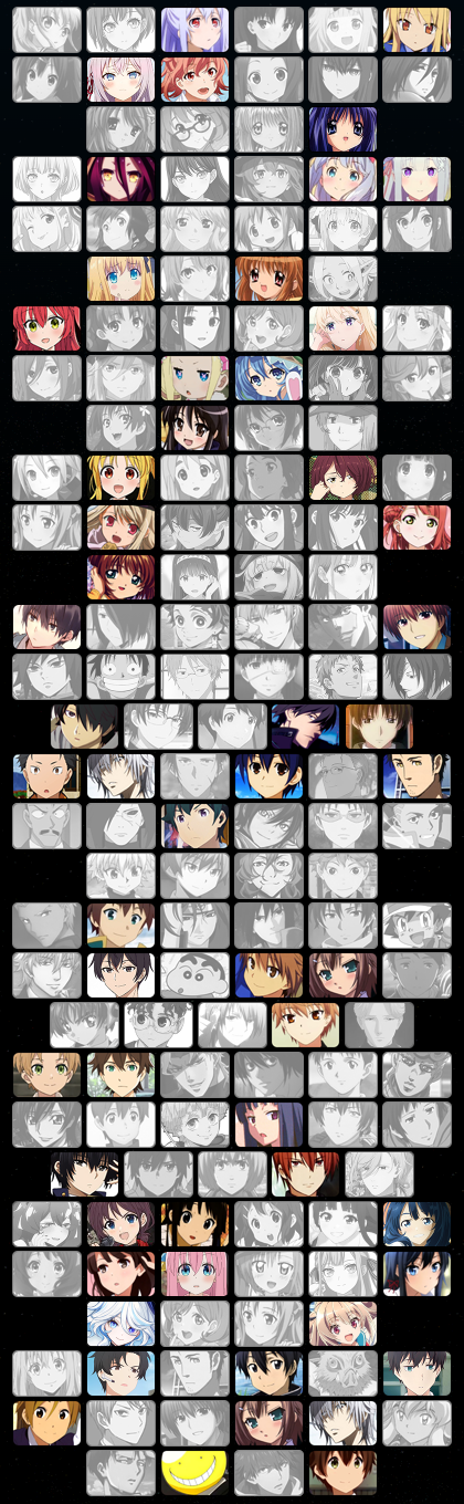Arena 1 [[Shiro]] Akiyama Mio Hirasawa Ui [[Kitagawa Marin]] Tachibana Kanade Kitashirakawa Tamako Anya Forger Itsuka Kotori Basori Tiara [[Ayanami Rei]] Yatogami Tōka Natsume Reiko Kirigiri Kyōko Kafū Chino [[Darkness]] Anju Emma