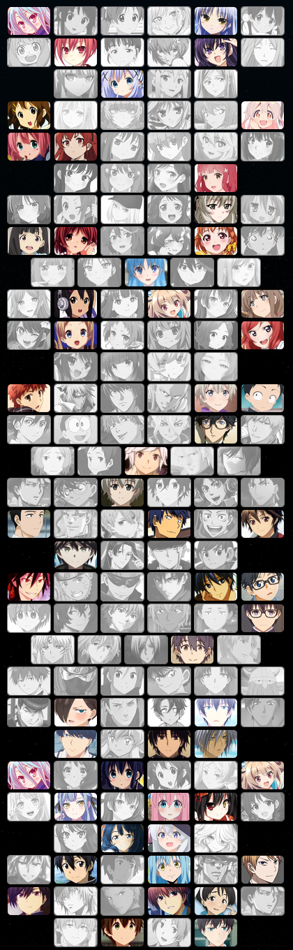 Arena 7 Sora Uzumaki Naruto Gojō Satoru [[Emiya Kiritsugu]] Okazaki Tomoya Arima Kōsei Yuzaki Nasa Dazai Osamu Nagisa Kaworu Amuro Tōru Ishida Shōya Aki Tomoya Sesshōmaru Theoto Rikka Imamura Kōhei Lawrence [[Kraft Lawrence]]