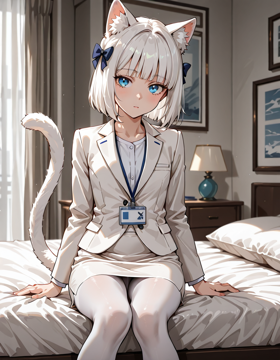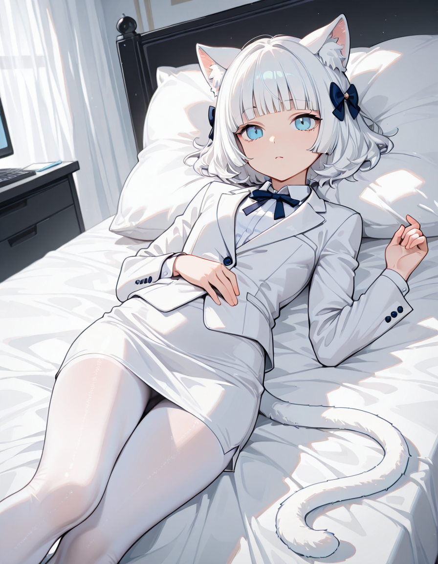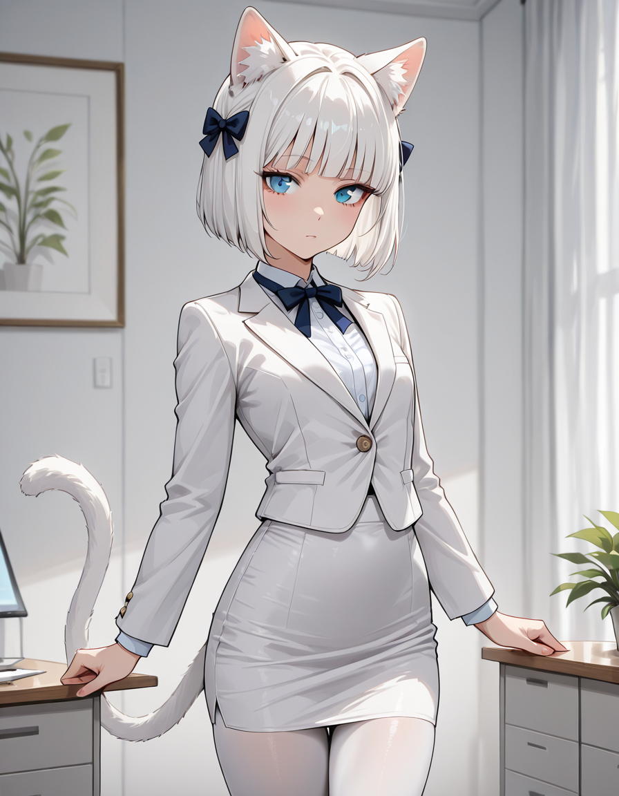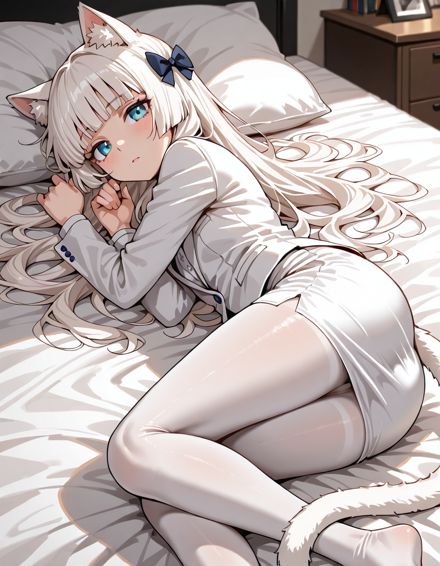 Ей самой захотелось такой костюм. Хи-хи, теперь она вся с самого низа и до верха в белом, как её ушки.