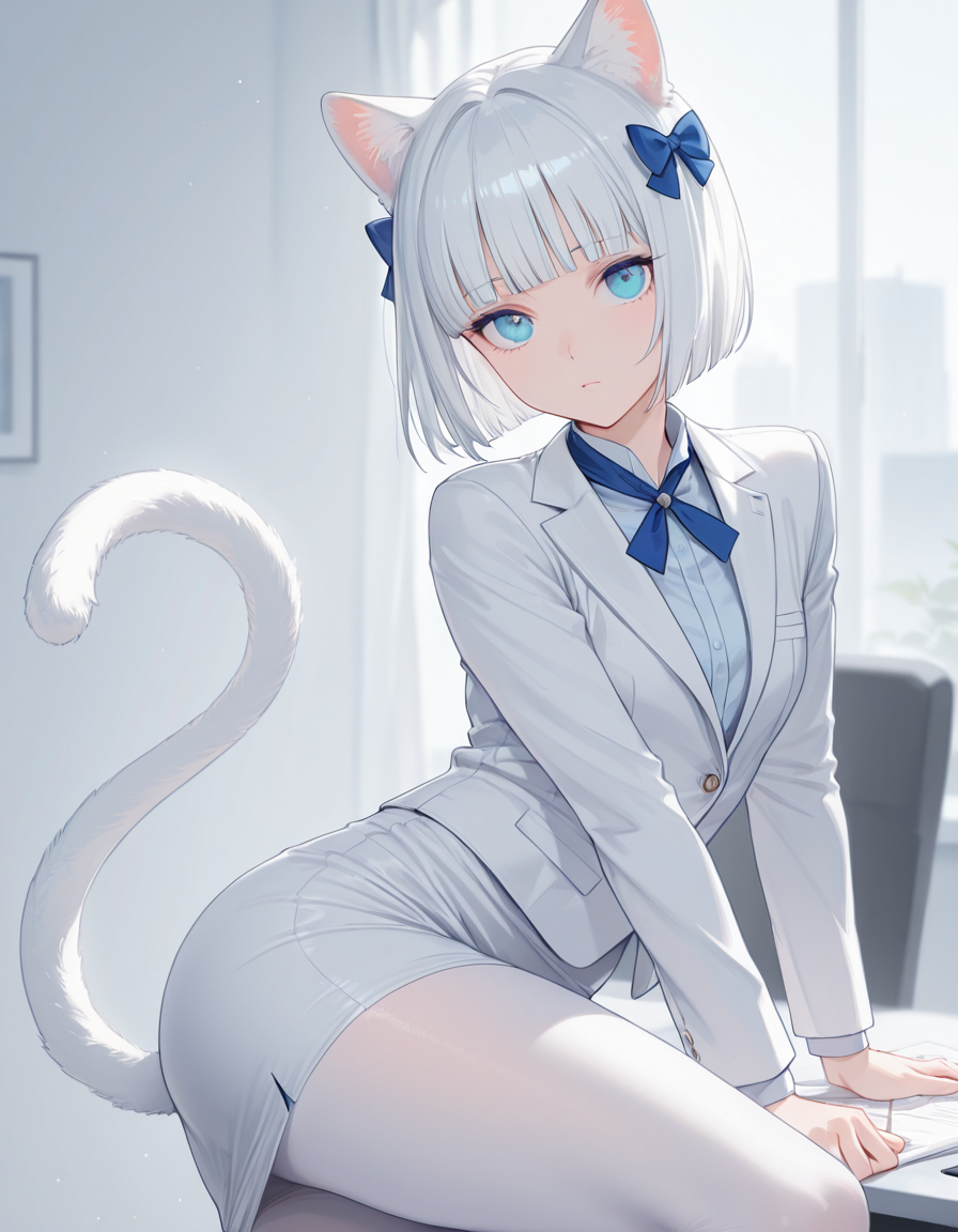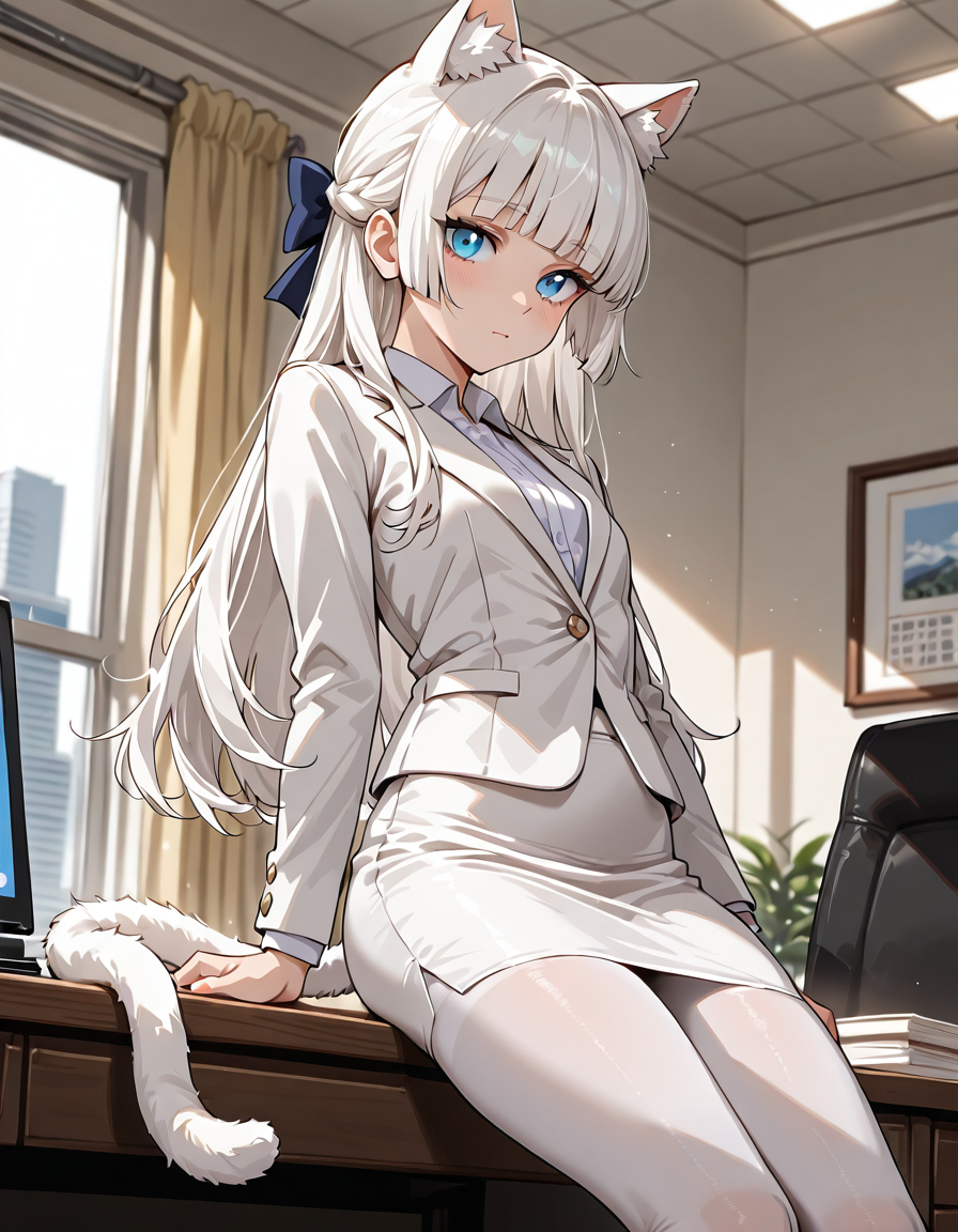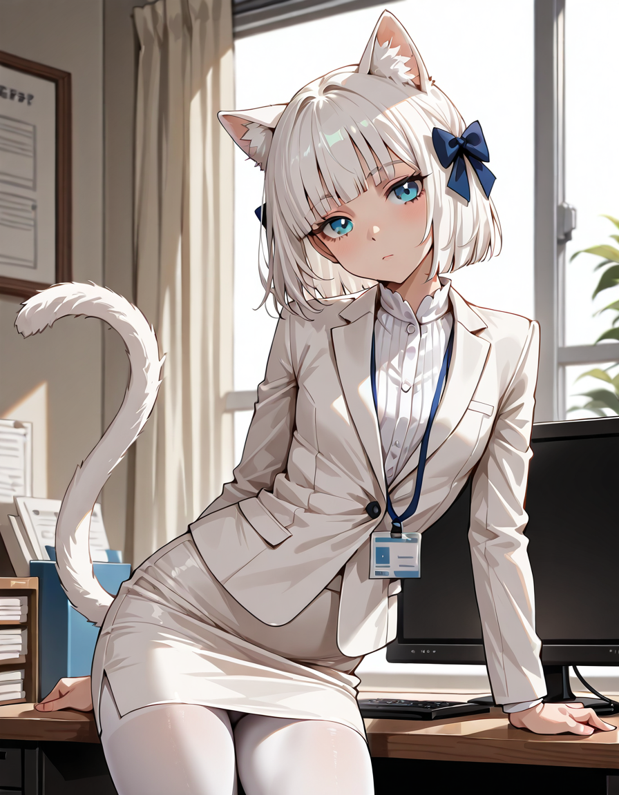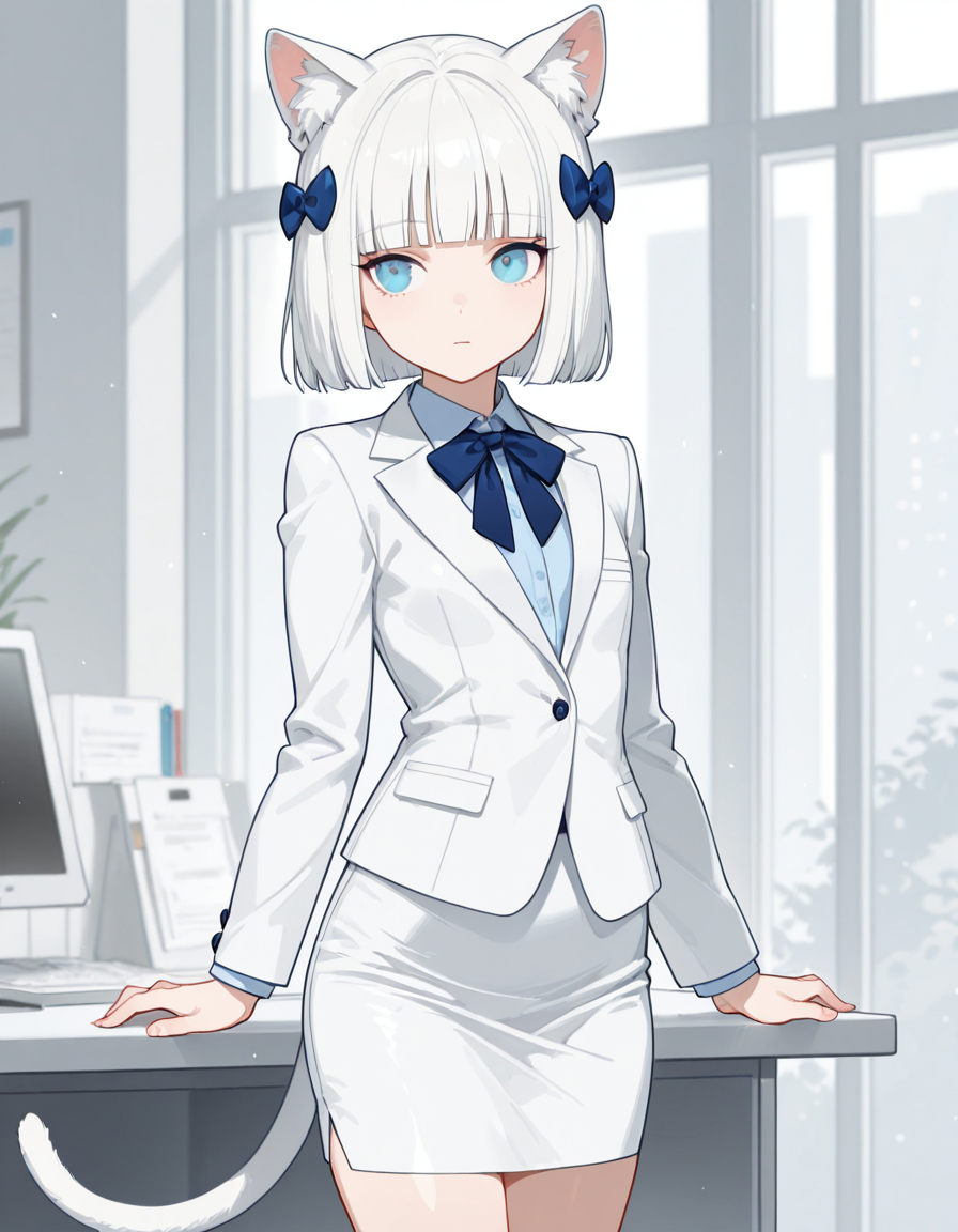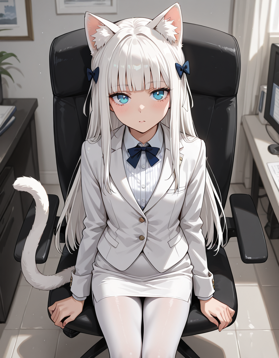 Ей самой захотелось такой костюм. Хи-хи, теперь она вся с самого низа и до верха в белом, как её ушки.