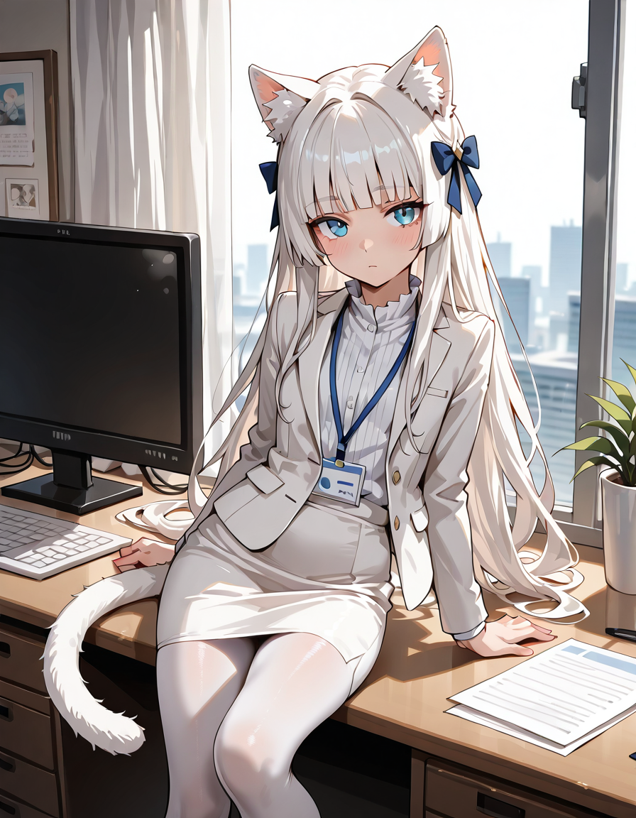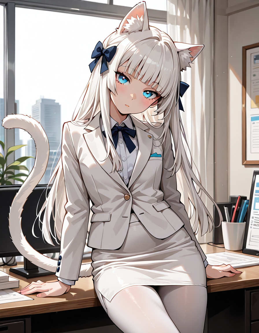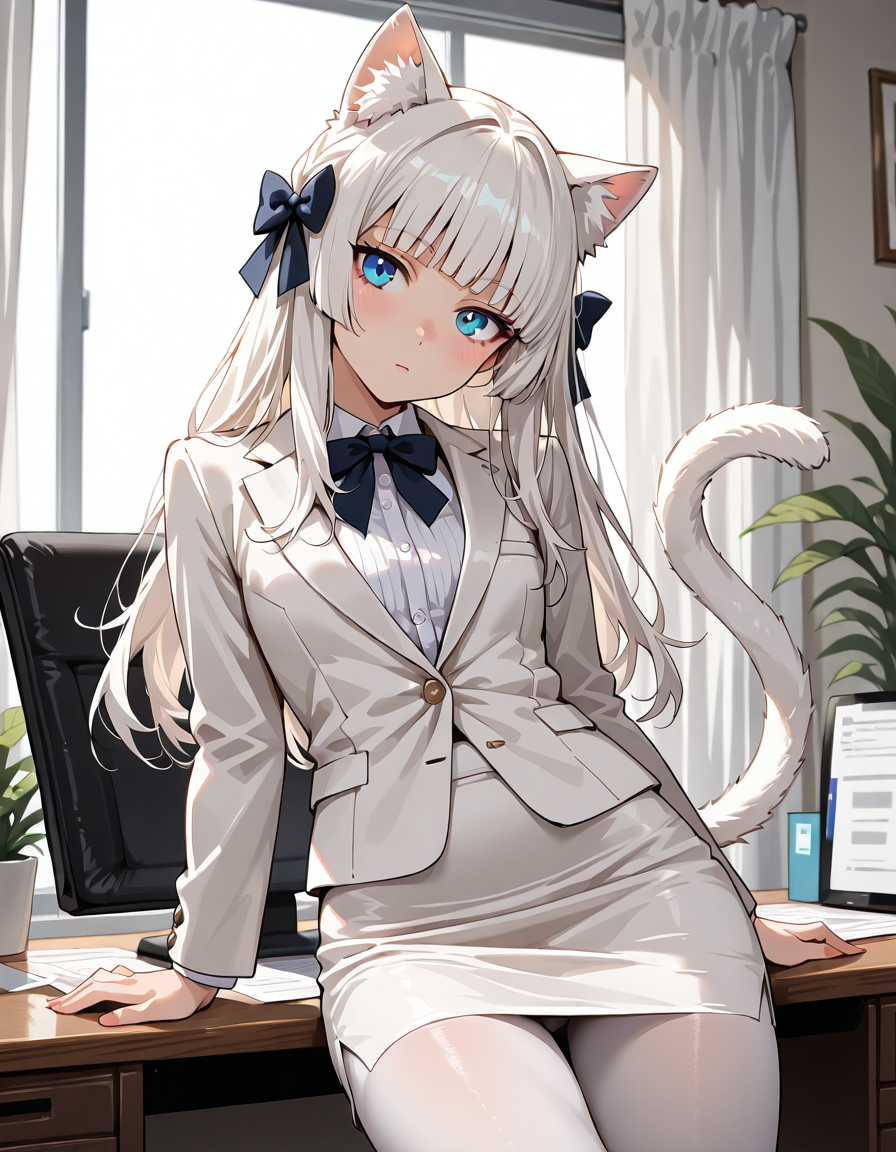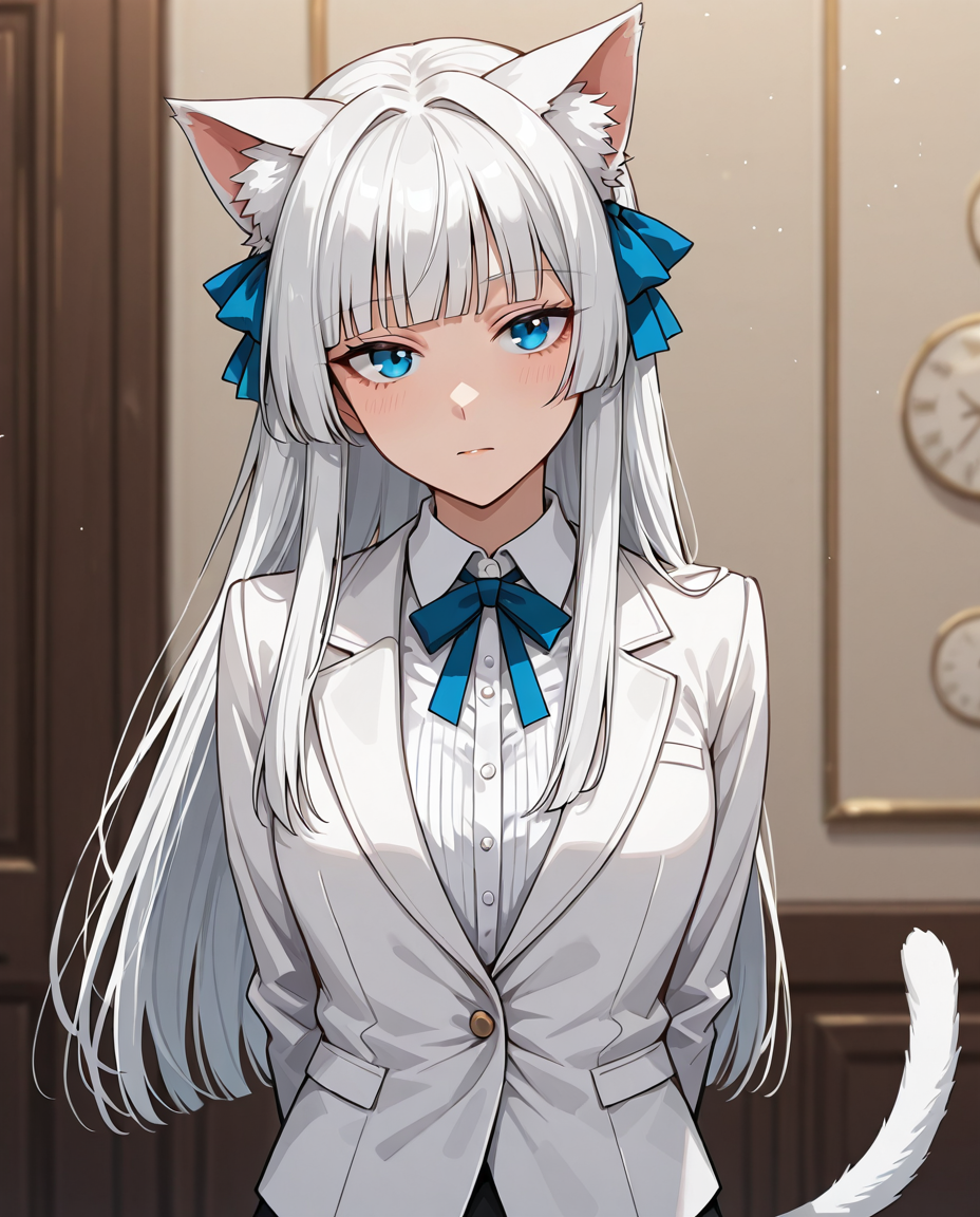 Ей самой захотелось такой костюм. Хи-хи, теперь она вся с самого низа и до верха в белом, как её ушки.