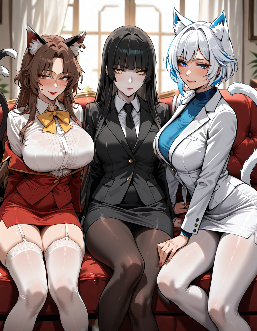 Шеннон с согласием кивнула и немножко поёрзала на месте, когда Чен так провела рукой по боку. В ответ же девушка обнимала и поглаживала кису, придерживая её и не давая сползти со стула вниз. Но и беленькой кошкодевушке Шеннон уделяла внимание, в ответ поднося к ней бутербродики с рыбкой и следя за тем, чтобы кошечка успевала расправиться с ними. Сама же брюнетка тоже расправлялась с бутербродами, разве что оставляя те, которые с рыбкой, для Чен и Юки.