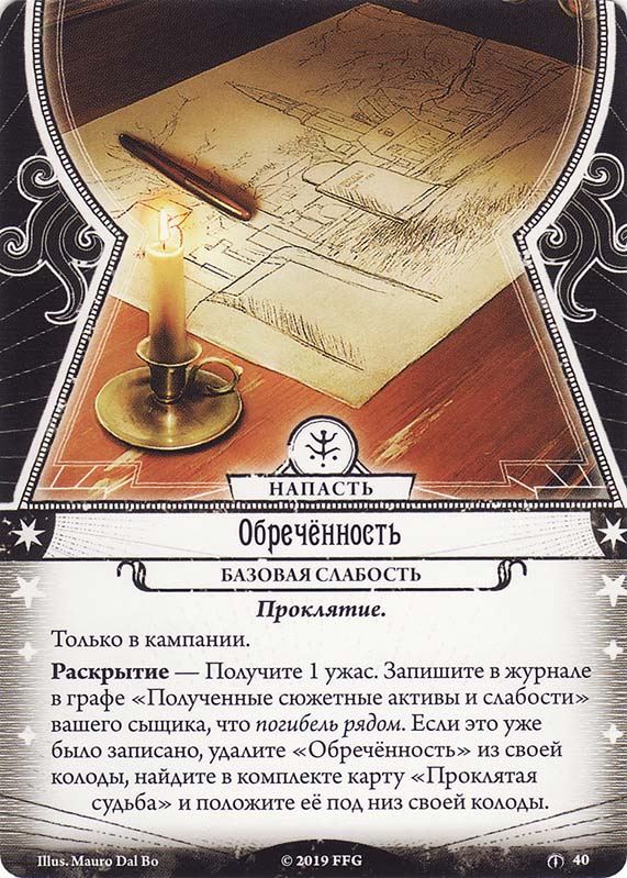 Можно заказать очередной, уже четвёртый набор сыщиков ради единственной карты. Карты слабости, которая не усиливает колоду игрока, а ослабляет, причём считается самой ядрёной слабостью. Да, картинкой прикреплена она.