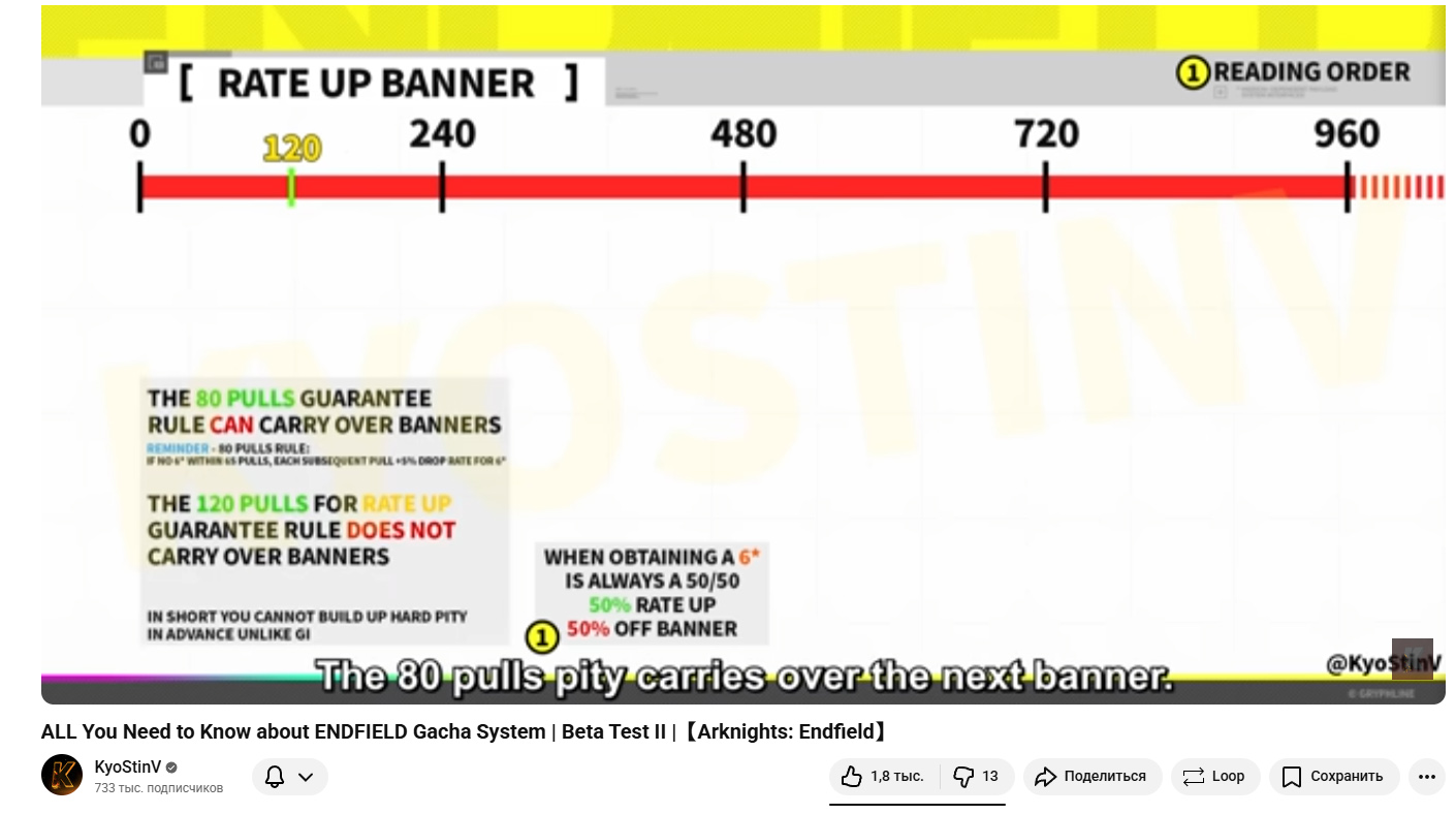 Есть 50/50, но если проиграешь 50/50, то следующий раз снова 50/50, а не гарант. Если получаешь рейт-ап персонажа, то счётчик не сбивается. На 80й крутке софт пити - получаешь персонажа, но рандомного, и лишь на 120 уже хард пити и получаешь рейт-ап персонажа.