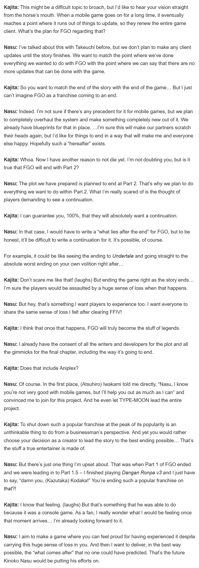 When I explained the final plot of Part 2, he agreed, and then immediately said, "I want to include all the Servants." Then, a few days later, he presented that incredibly elaborate storyboard.